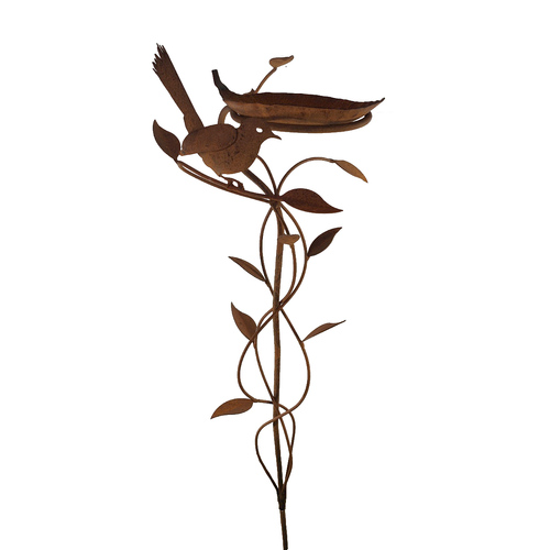 BBS001 This Birdbath Garden Stake with Dragonfly is made from mild steel which has developed a unique rust patina. It contains a rusted steel bowl. An ideal art piece for the smaller garden and is perfect for little birds to bathe and drink from It is 260mm wide x 1000mm high. It can also be used as a bird feeder. For Bulky Items will will need to do a manual quote for delivery In order to provide you with the best possable shipping price. Contact us in the Gallery on 0403 675 170 for a delivery quote to your area.