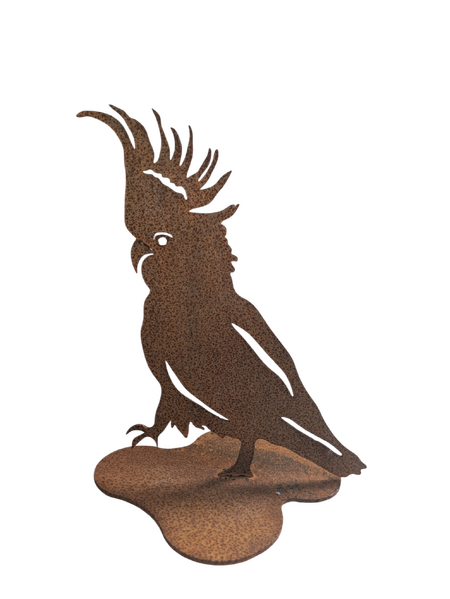 Bring a touch of native Australian flair to your garden with this Cockatoo Stand Garden Art. Made from durable mild steel, this sculpture has developed a unique rust patina, giving it a rustic, weathered charm. Measuring 200mm wide and 260mm high, it features a detailed cockatoo design, making it a striking addition to garden beds, patios, or outdoor spaces. Perfect for bird lovers and those who appreciate handcrafted decor, this piece adds character and a hint of the wild to your home.