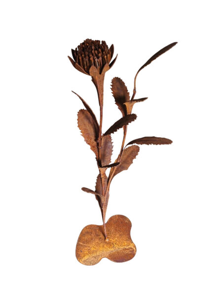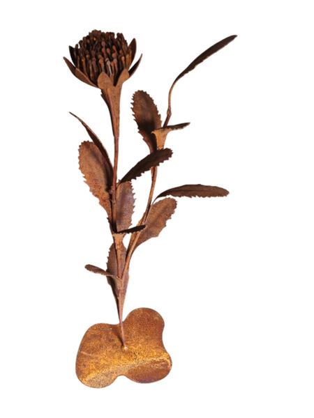 This stunning Waratah Stand Garden Art is made from mild steel which has developed a unique rust patina. This Waratah Stand is 750mm high, 260mm wide and 230m deep.