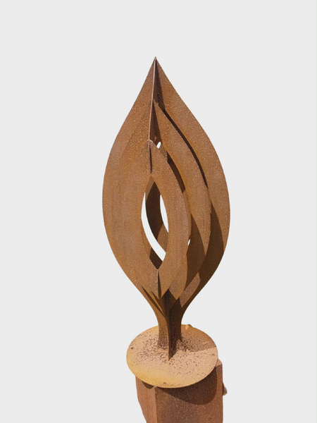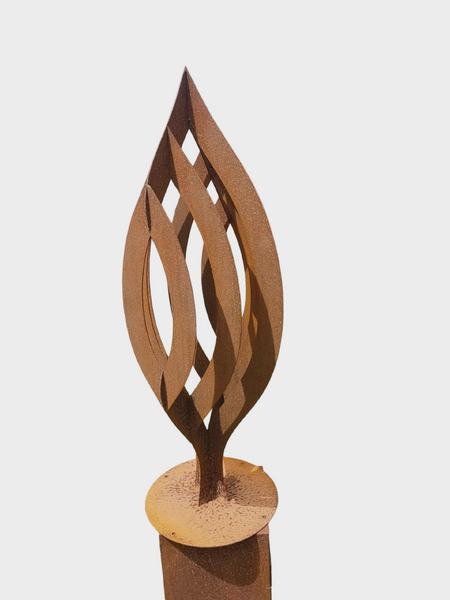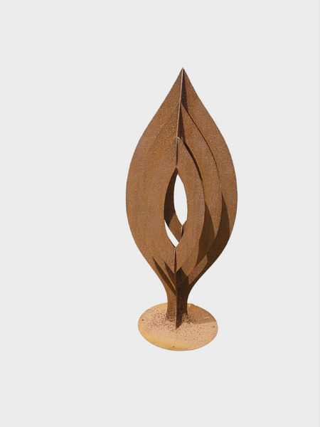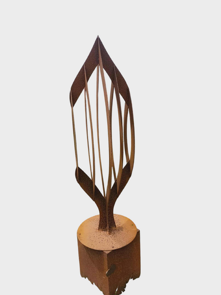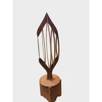 This Ovals Inverted Sculpture is made from mild steel, which has developed a unique rust patina. Standing 1200mm tall, this striking piece features a dynamic arrangement of oval shapes that create visual movement and depth. Its modern, minimalist form makes it a standout addition to any garden, courtyard, or entryway.