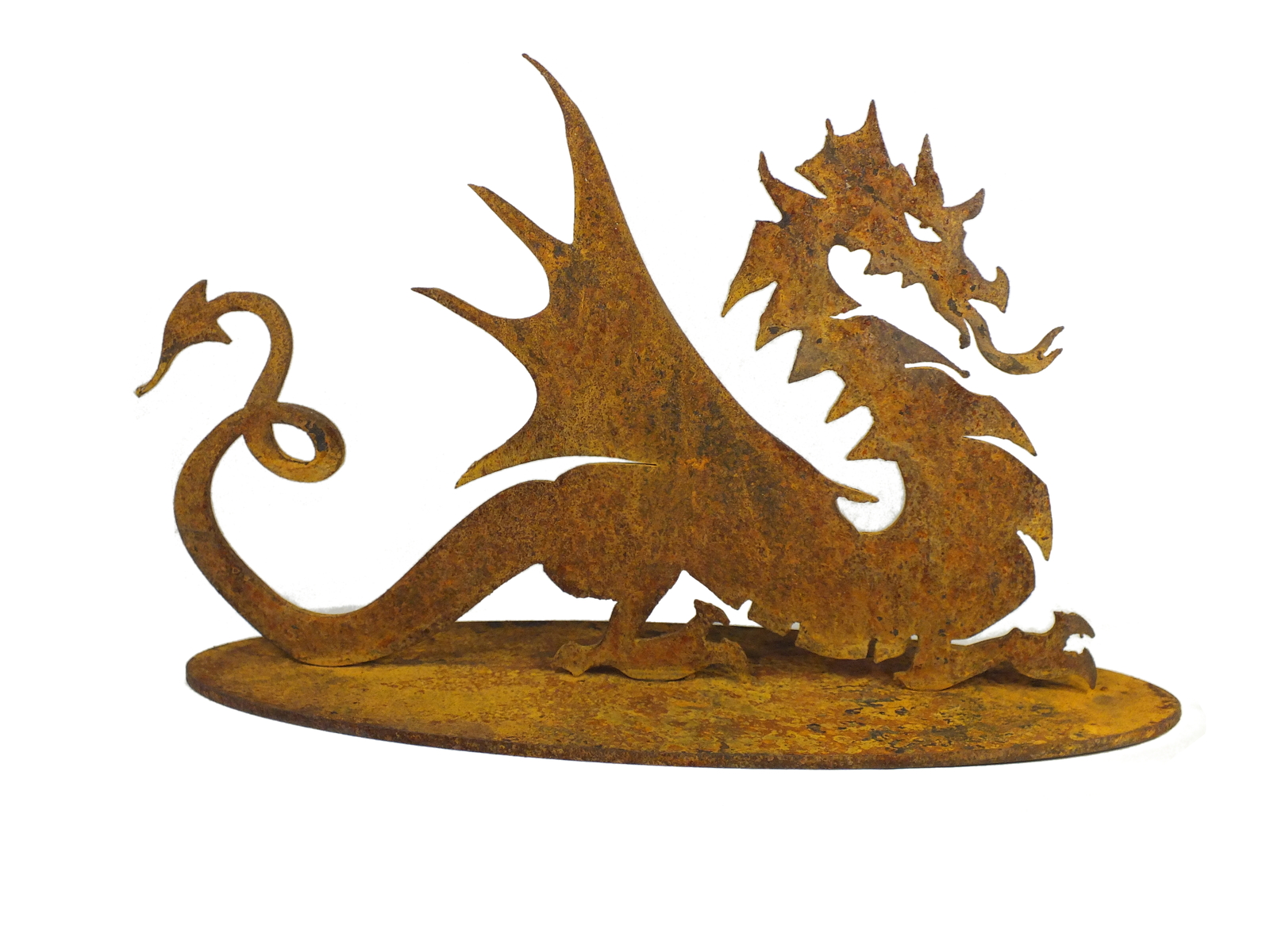 This Small Dragon stand is made from mild steel which has developed it's own unique rust patina. This Dragon is 145mm in height and 225mm in length.