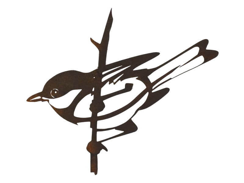 WPA216 This bird on branch wall art is made from mild steel and has developed a unique rust patina. It is 420mm wide and 350mm high.